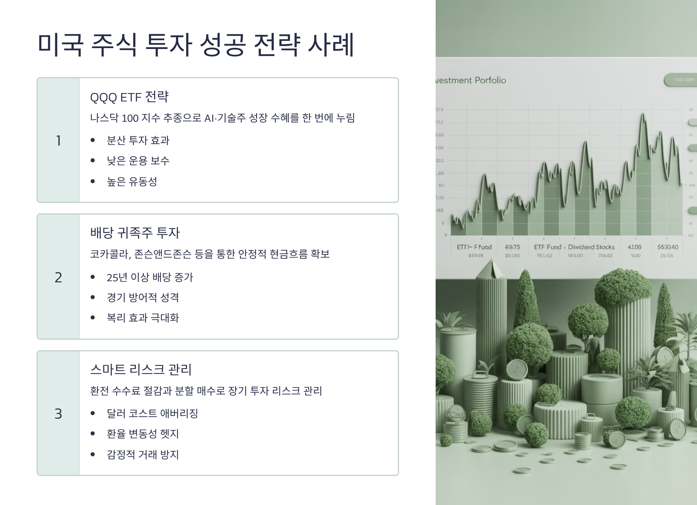 미국 주식 투자는 단순히 주식 투자를 넘어, 세계 기축 통화인 달러 자산을 보유하는 효과를 가져옵니다. 이는 투자 포트폴리오의 위험 분산(환율 헷지) 측면에서 매우 중요합니다.