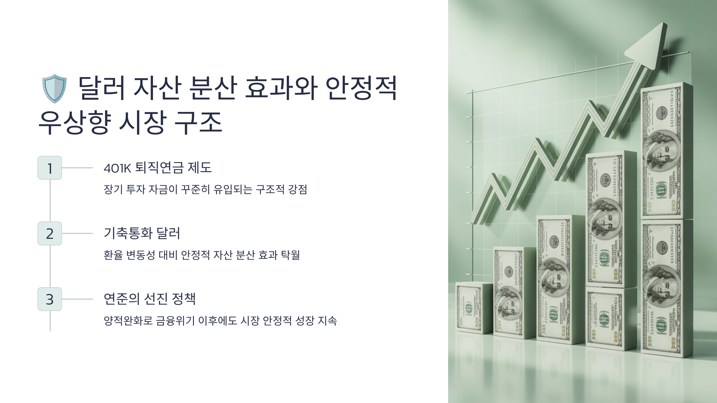 2. 🛡달러 자산 분산 효과와 안정적인 '우상향' 시장 구조